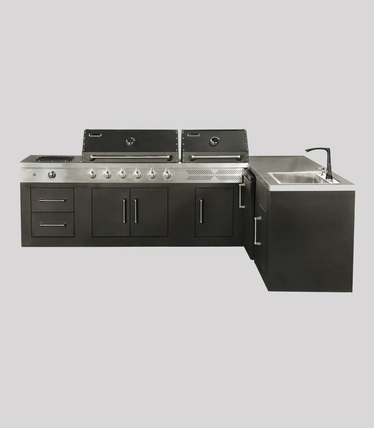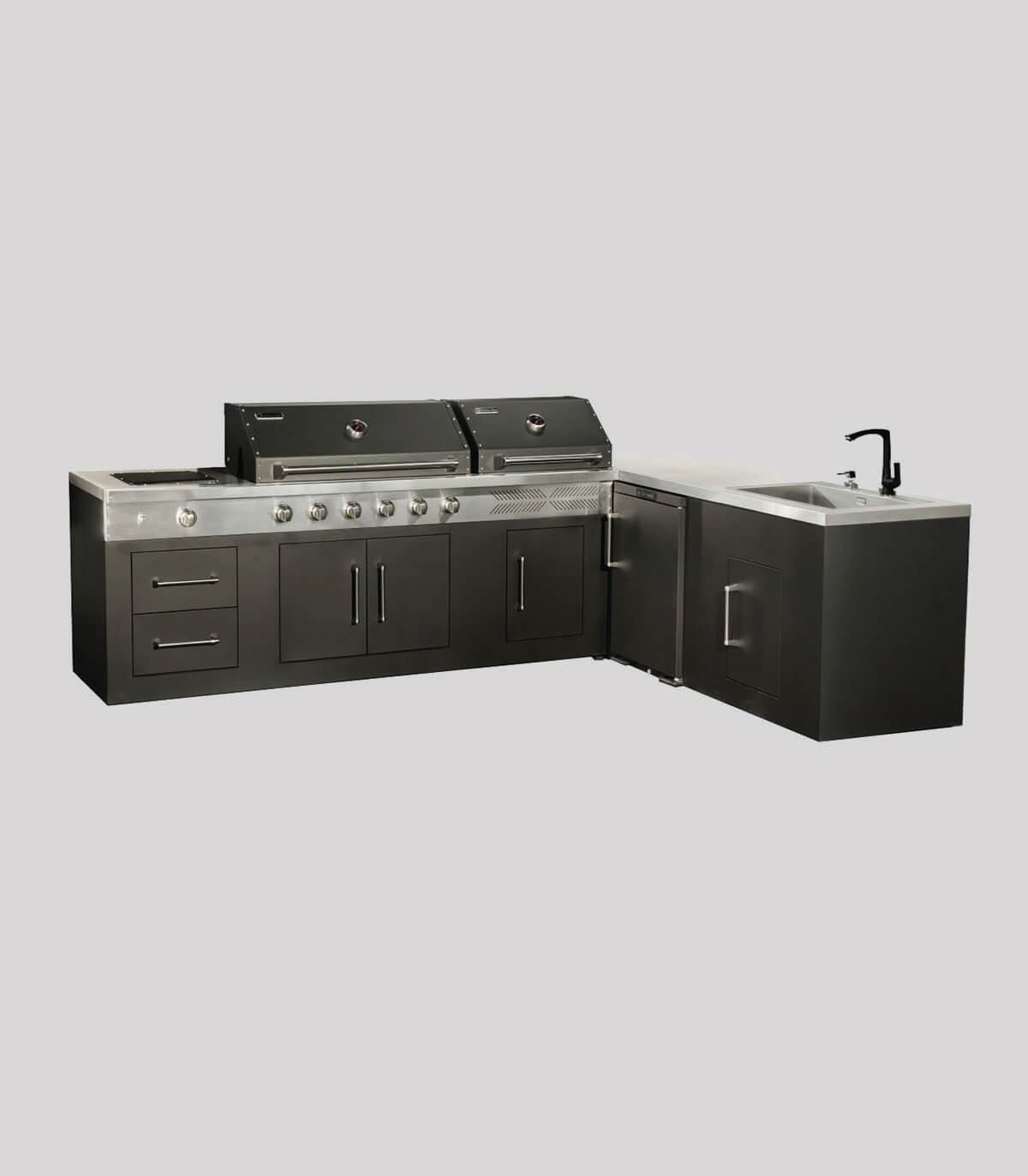 این مجموعه نهتنها یک باربیکیو، بلکه یک آشپزخانه کامل فضای باز است که برای ویلاها، تراسهای بزرگ و روفگاردنهای لوکس طراحی شده است.