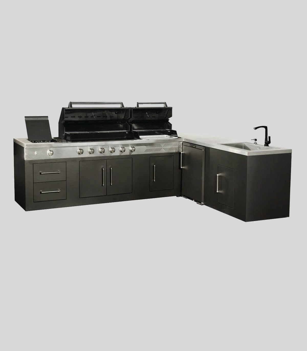 - ترکیب کامل آشپزخانه فضای باز با باربیکیو، سینک و اجاق جانبی